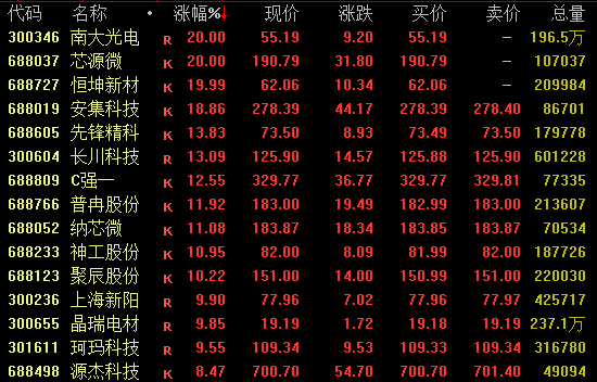 光刻机、存储芯片、先进封装等半导体产业链股盘中集体爆发,截至收盘,南大光电、芯源微、恒坤新材等20%涨停,安集科技涨近19%,普冉股份涨近12%,北方华创涨逾6%、兆易创新涨近5%。值得注意的是,芯源微、普冉股份、北方华创、兆易创新等盘中均创历史新高。